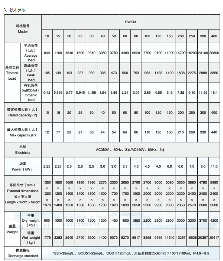 重量(濕重): 8268kg 排放指標: TSS≯35mg/L,BOD5≯25mg/L,COD≯125mg/L,大腸菌群數(Colichin)≯100個/100ml,PH-6~8.5