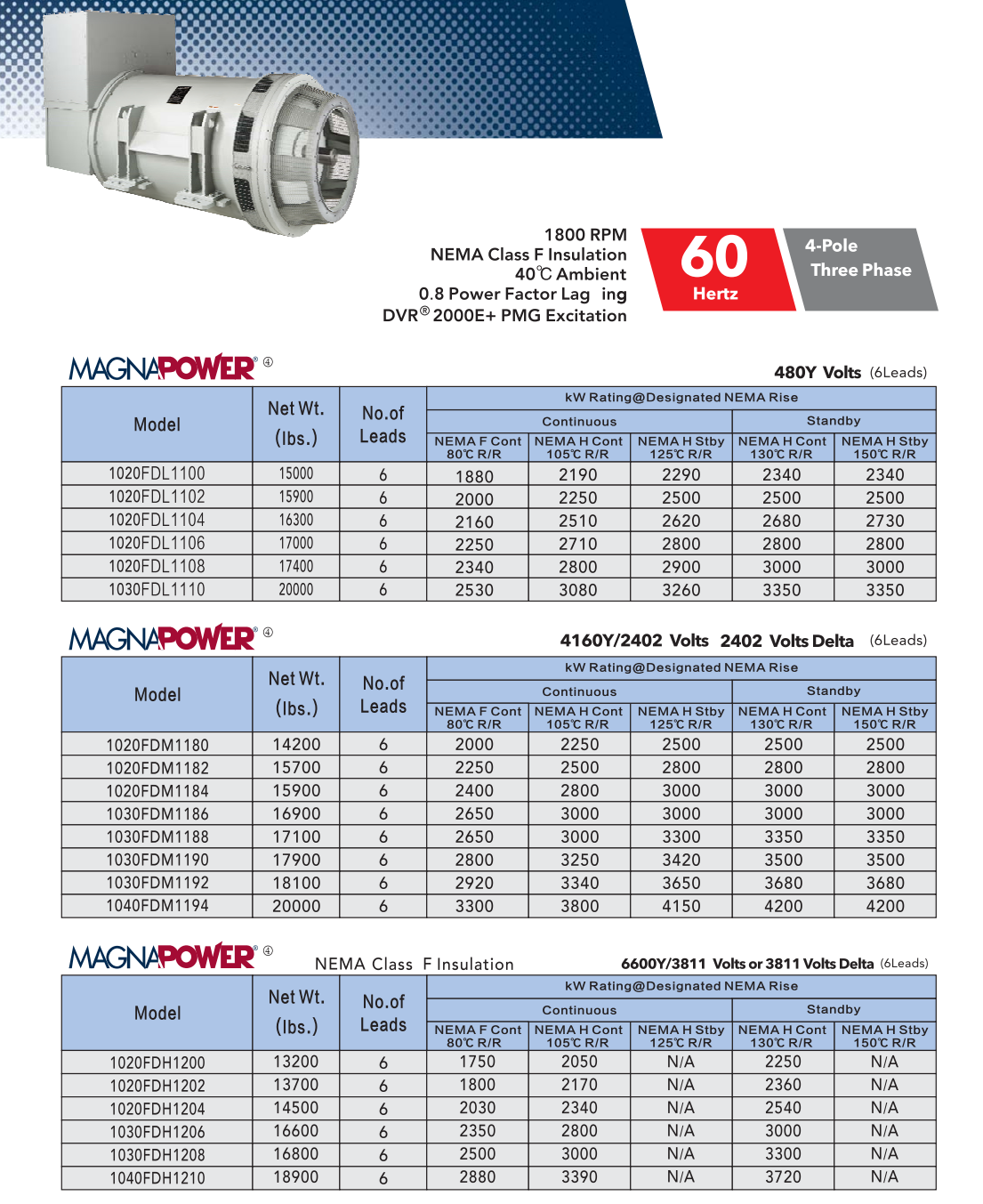 | MAGNAPOWER1000無刷三相交流發電機60HZ | |||