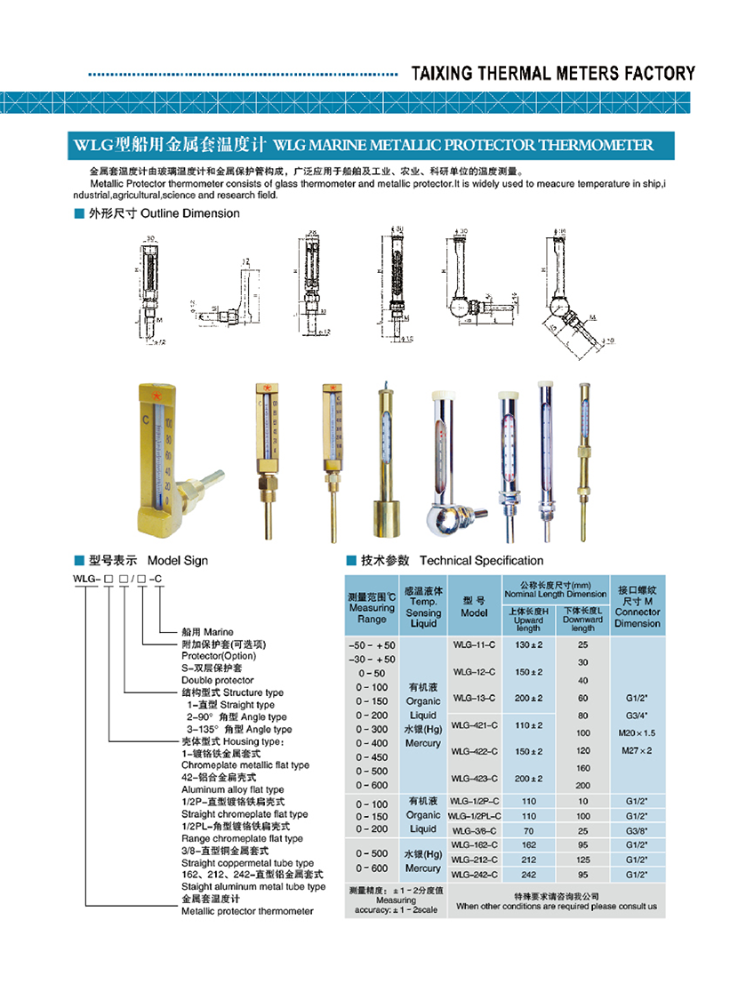 WLG型船用金屬套溫度計