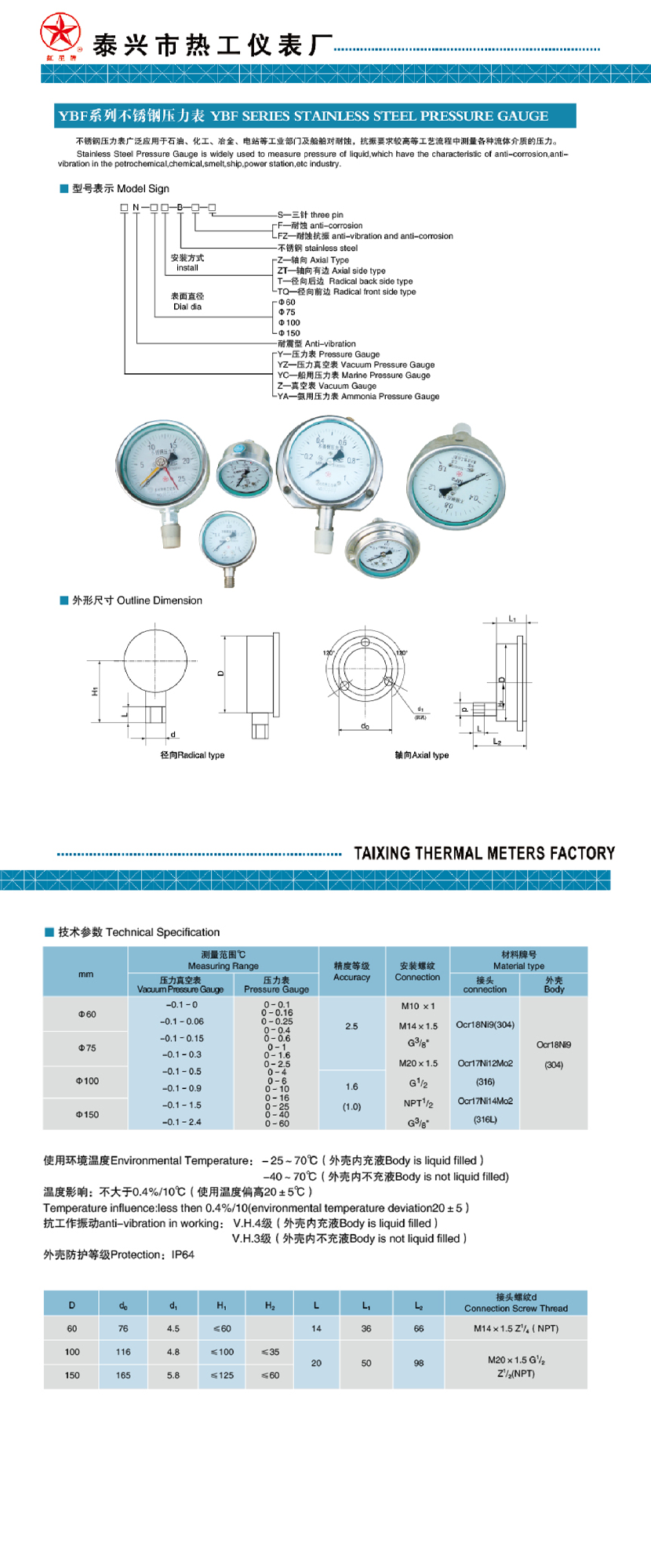 | 環境溫度: | -25~70(外殼內充液)/-40~70(外殼內不充液)℃ | 防護等級: | IP64 |