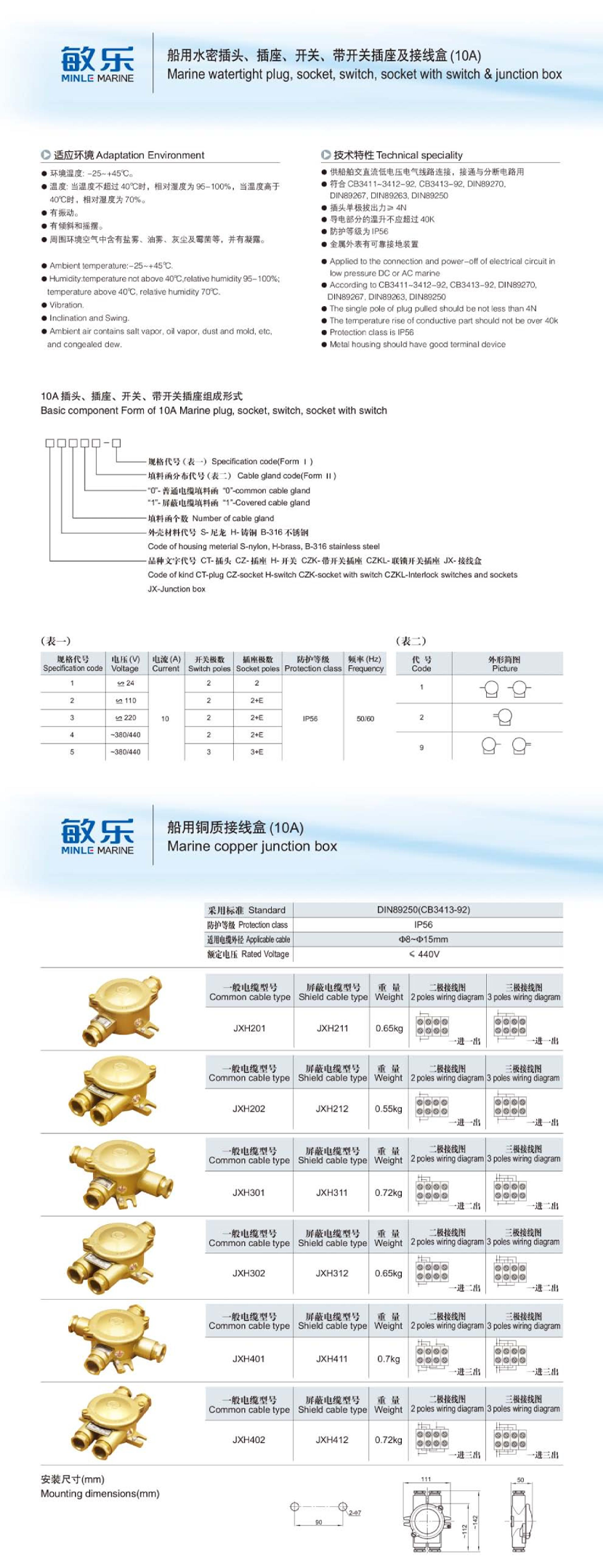| 船用銅質(zhì)接線(xiàn)盒(10A) | |||