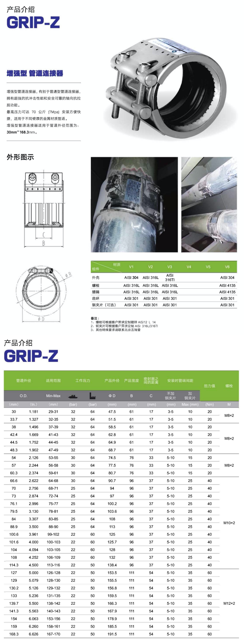 管道外徑: 60.3mm 適用范圍: 59-61mm