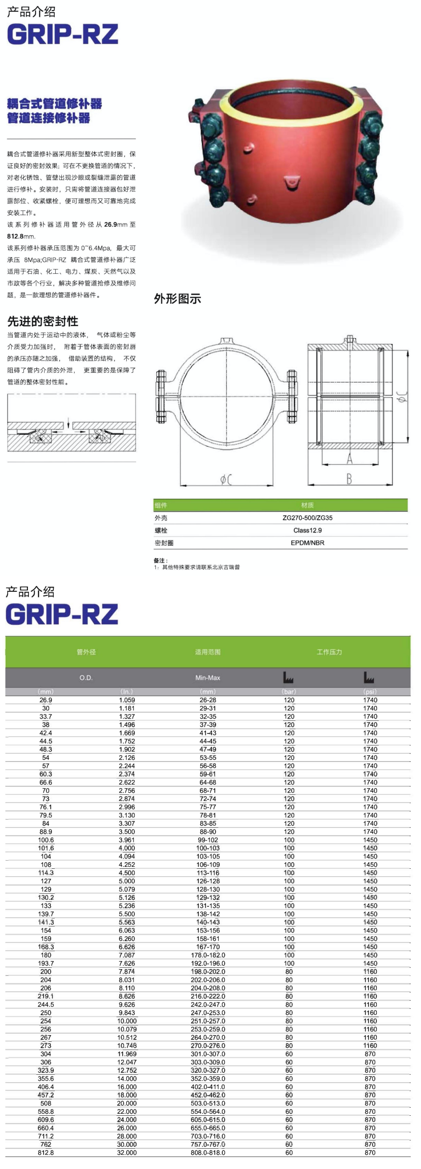 管道外徑: 154mm 適用范圍: 153-156mm